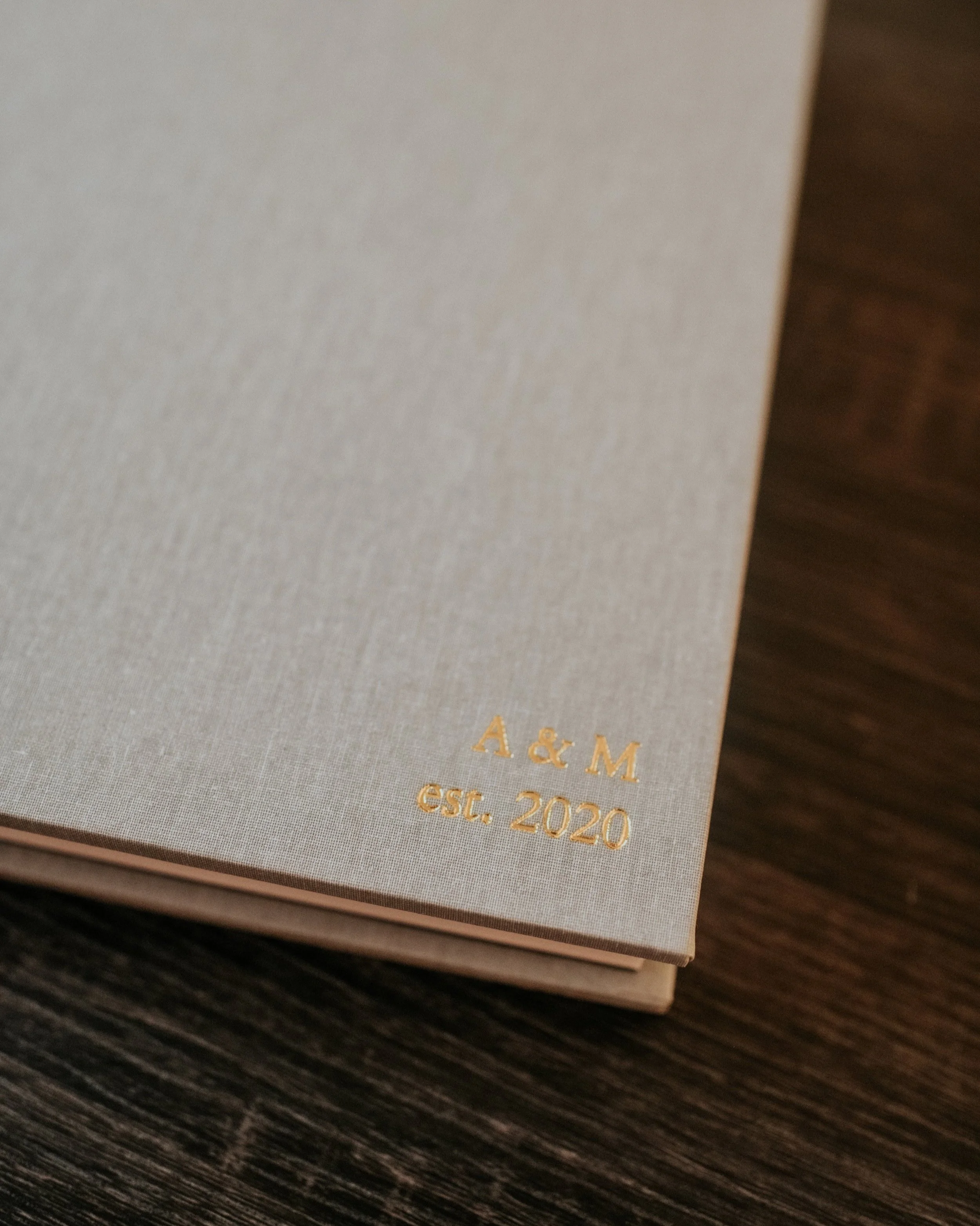 Debossing is a physical press into the cover material and can be had in blind (no color) or a foil filler (rose gold, gold, silver, black, or white).